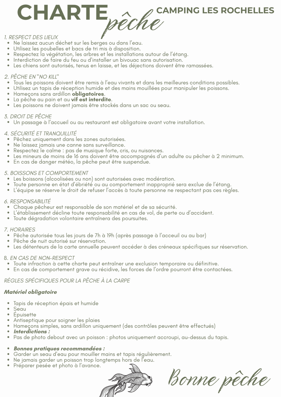 Avant de lancer votre ligne, prenez un moment pour consulter notre charte de pêche.